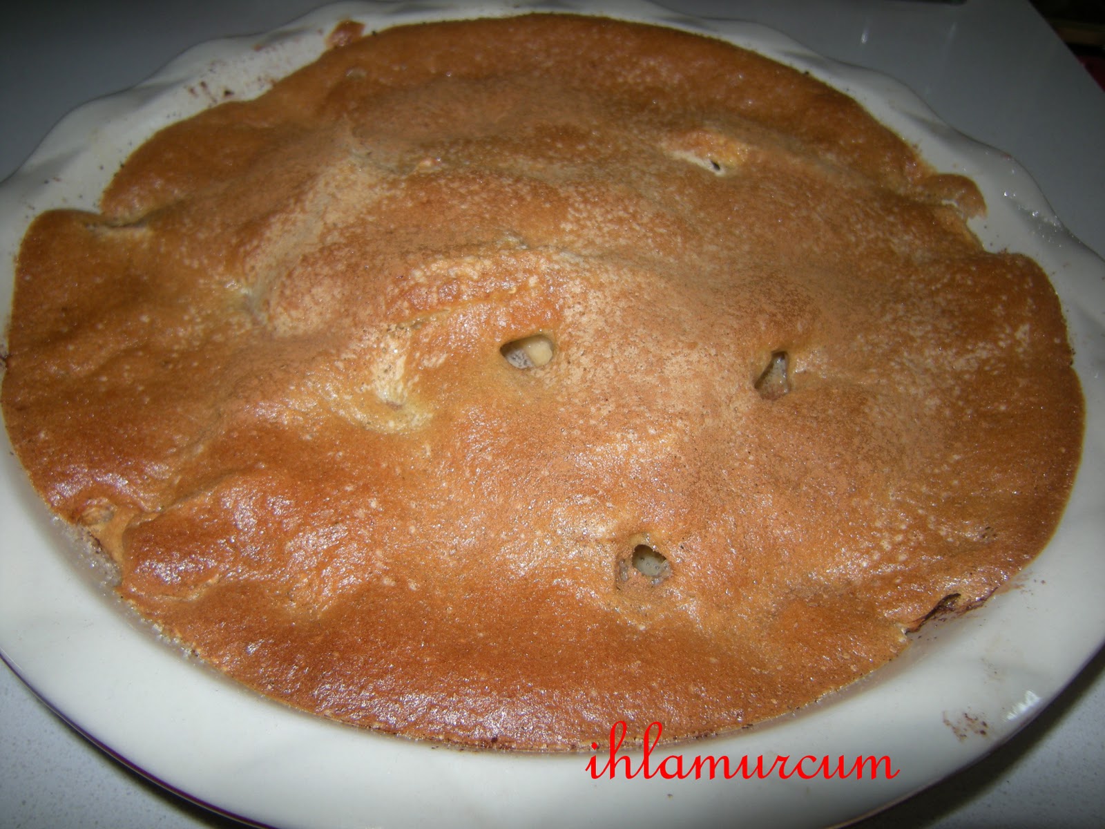 4-) Yumurta + şekerli karışıma ununu ekleyip , hemen elmaların üzerine gelişigüzel dökelim.
