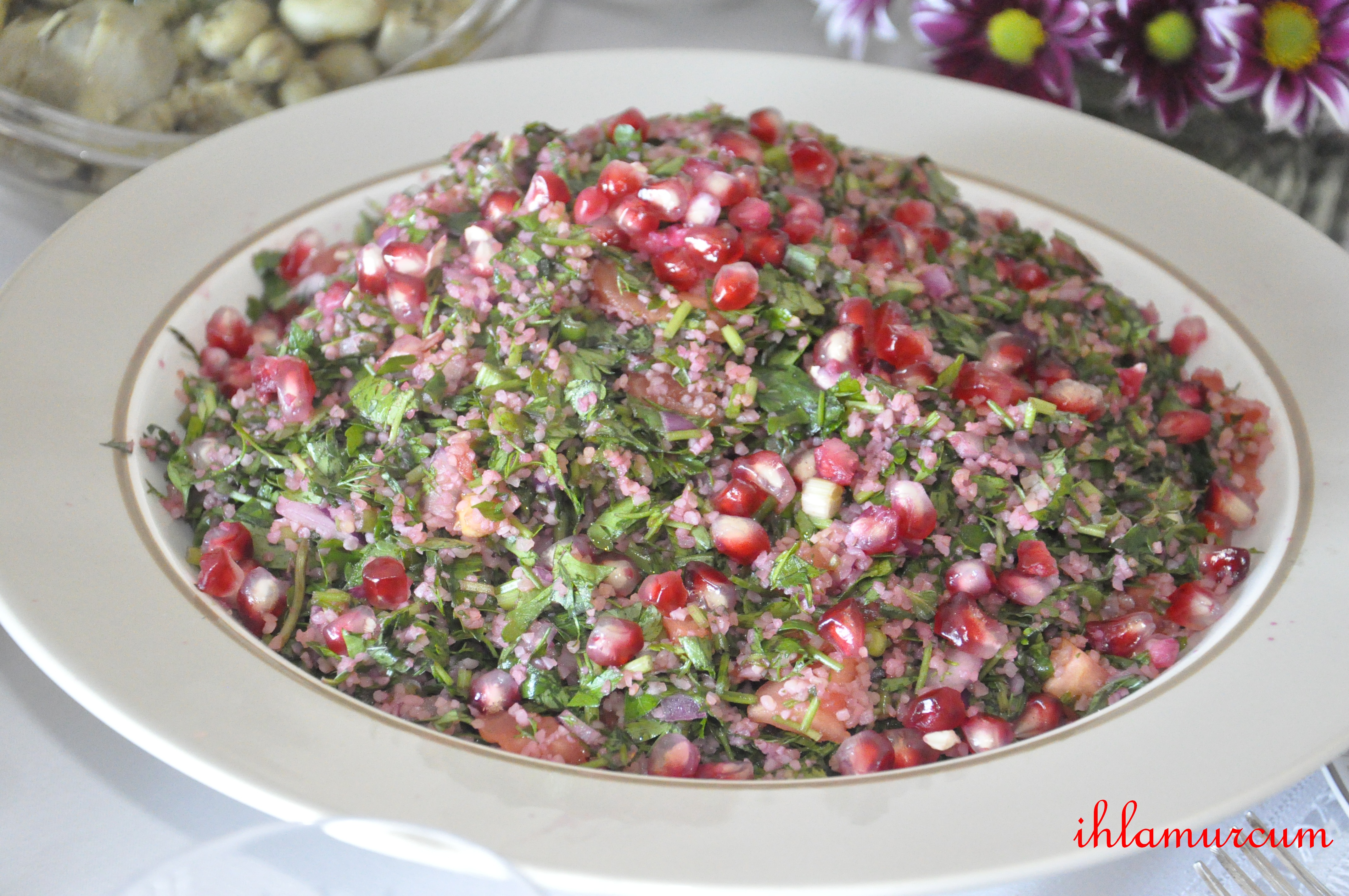 Salatamız Lübnan mutfağından… neredeyse bizim kısır salatamız. Ama farkı yeşilliklerinin çok bol olması, içine salça girmemesi ve benim aldığım tarifte limonun olmayıp, nar ekşisi ve şalgam suyuyla soslanması. Bu tarif arkadaşım Arzu Ö. ‘ ten. Onun sofrasında yemeye doyamadığımız , tekrar tekrar tabaklarımıza aldığımız nefis bir salata…