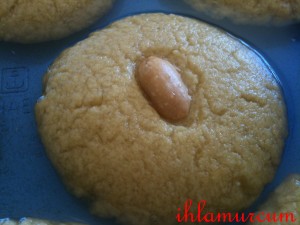 4-) Şekerparelerin tam ortasına yarım fıstığı bastırarak , koyun.